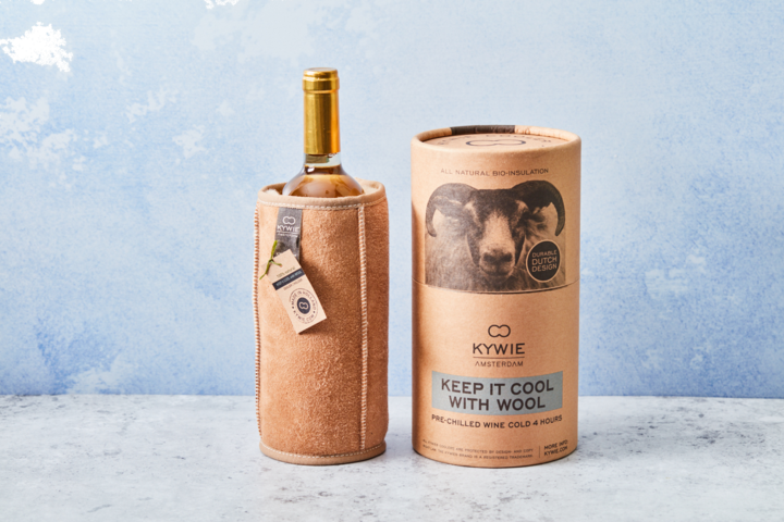 KYWIE® is EEN WIJNKOELER (en een thermos:) van Texelse wol